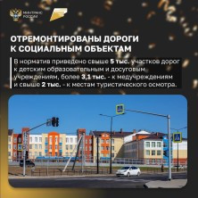 За это время построено, реконструировано и отремонтировано 150 тысяч километров дорожной сети. Работы выполнялись в 105 крупнейших городских агломерациях в 84 регионах, а также на федеральных трассах.